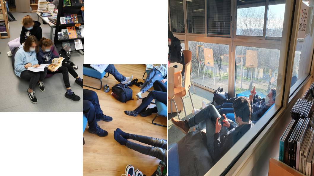 Un désherbage important des livres documentaires a également permis de reconquérir une partie de l’espace pour y installer des postes informatiques ainsi que des hubs pour le chargement des équipements individuels mobiles. Ceci a libéré les fenêtres afin de permettre aux élèves de s’installer sur des assises de type Z-tools pour lire ou travailler en bénéficiant de la lumière naturelle.